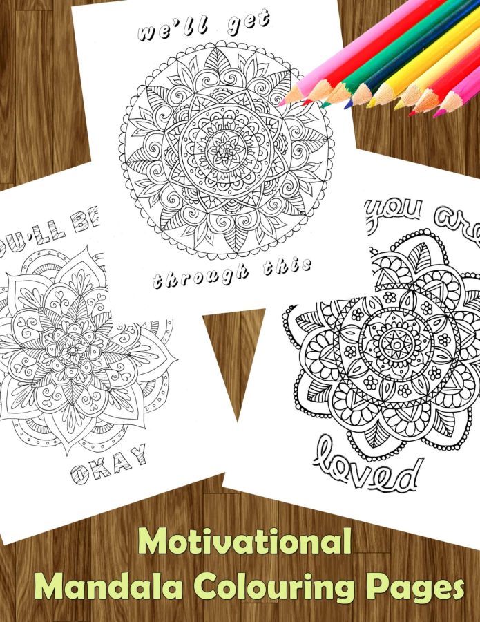 These colouring pages all feature my own hand drawn artwork and most include inspiring or motivational phrases to help get you through tough times.